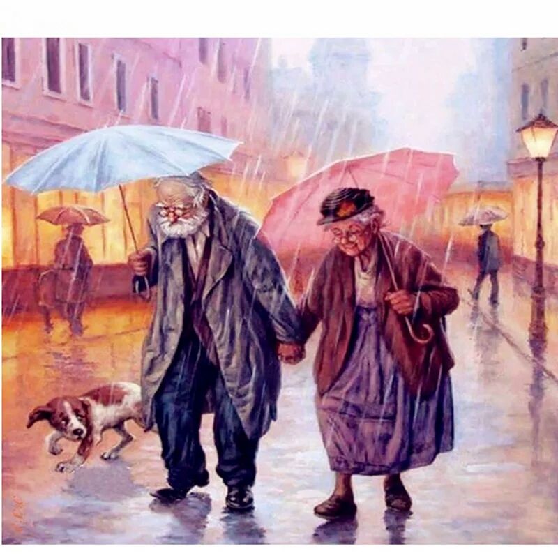 Opa en oma in de regen - Diamond Painting