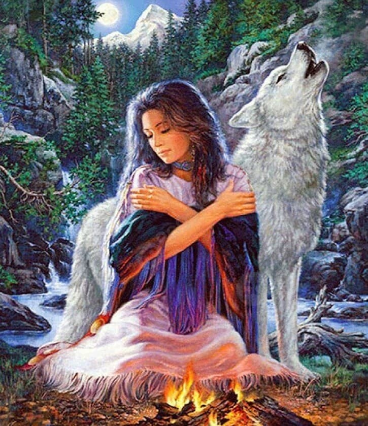 Indiane vrouw , kampvuur - Diamond Painting Rond
